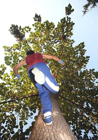 12月下午,北京西三旗几名跑酷爱好者攀爬训练跑酷, 正为2010年春晚训练。希望自己能够选进春晚剧组。