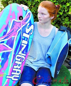新西兰14岁少女“鲨”口逃生 冲浪板击退鲨鱼