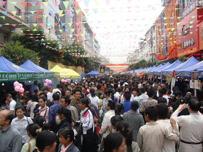 桂林徒步旅游网IwPO&g(K"K 4月28日,第三届“桂林米粉节”在兴安隆重开幕,米粉美食街开街仪式也在兴安县秦皇路上举行。市旅游局局长李志刚、兴安副县长齐桂平、广西烹饪餐饮行业协会会长黄桂辛同时启动水晶球,打开了美食街大门。