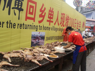[9FP!]2a0 当天的米粉街是兴安最热闹的地方,人潮涌动、接踵摸肩,中外三十多家特色米粉店云集米粉街,有来自俄罗斯、俄罗斯、及中国的特色美食,还有中国烧烤大王阿炳现场烧烤一百只全羊表演。
