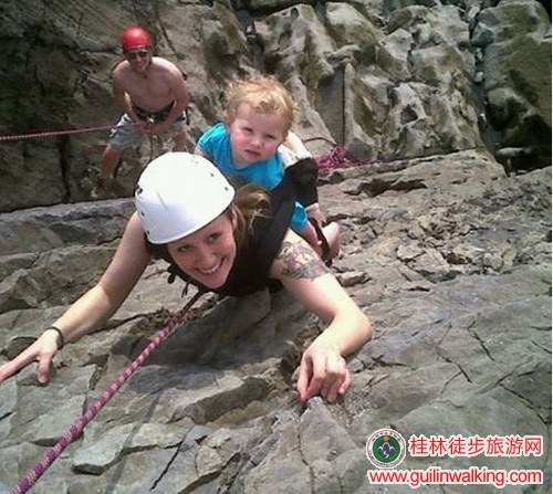 威尔士单身妈妈背幼女攀岩惹争议 自称让女儿接触大自然