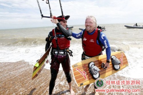 布兰森成为以风筝冲浪方式横渡英吉利海峡的年龄最大的人。