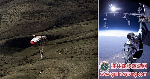 桂林徒步旅游网\.YTR0@4d.\]据悉,作为一名极限运动员和前军队伞兵,菲利克斯已经完成了2500次高空跳伞。此次跳伞备受美国国家航空航天局(NASA)的关注。保持着31千米高空跳伞记录的乔·基廷格也前来为菲利克斯作指导。此外,菲利克斯称,他将在今年的8月末或9月初挑战37千米的高空跳伞新高度。