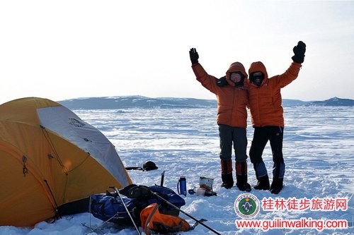 俄远东地区2名驴友在结冰海面成功穿行2周